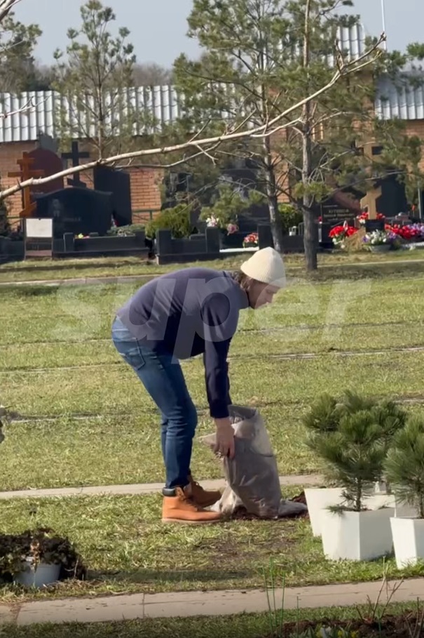 Чернышев принес на могилу супруги небольшие елочки в горшках. Прохожие сняли, как он рассыпает землю и высаживает растения. Причем памятник на могиле Заворотнюк так и не поставили.